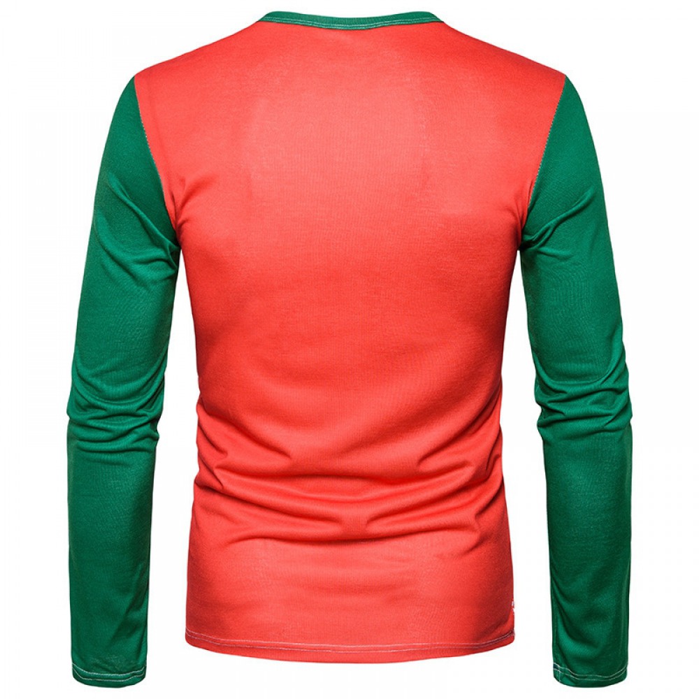 New 3D Personality Printing Fashion Men's Christmas Elk Pattern Long-Sleeved T-Shirt