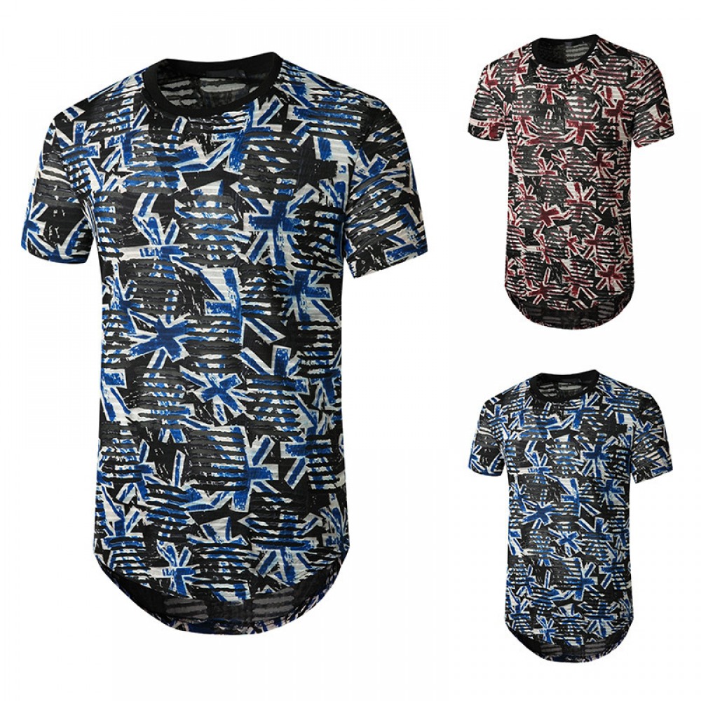 New Men's Plus Size Smiley Hole Short-Sleeved Hipster Hip-Hop T-Shirt