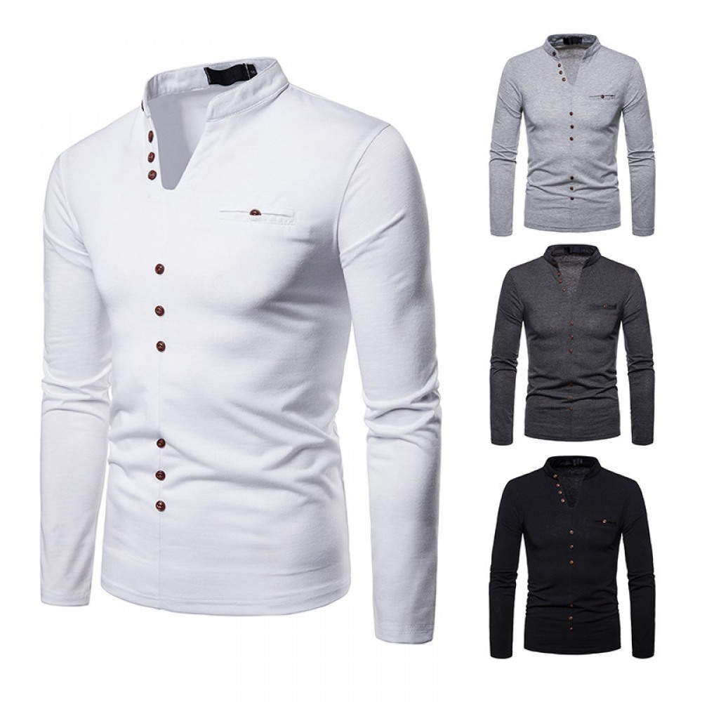 Men's Plus Size Plus Velvet Warm V-Neck Long-Sleeved T-Shirt Base Shirt