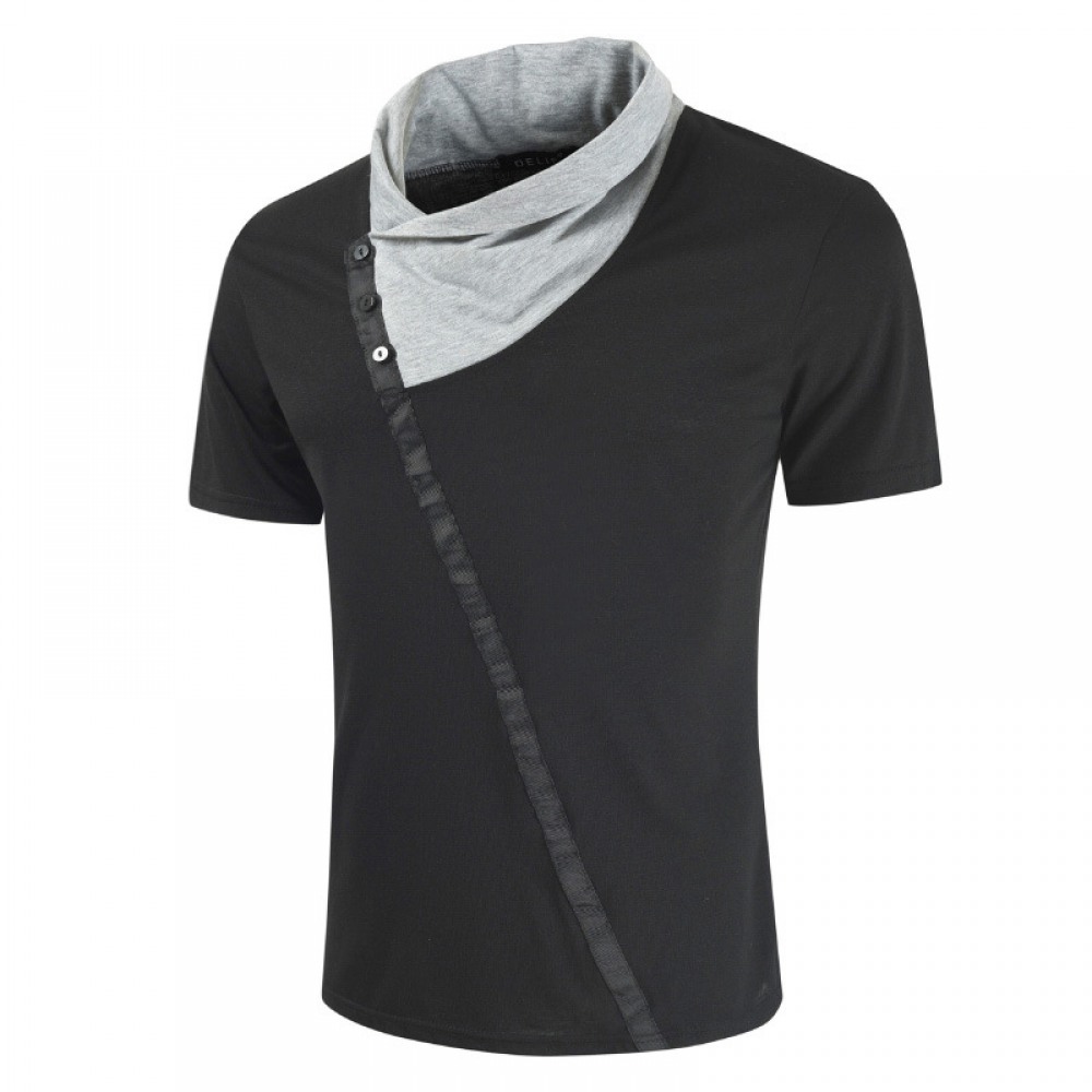 New Style Short-Sleeved Fashion Color Matching Pile Collar Men's Casual Shirt Plus Size Loose Printing Stitching Contrast Color