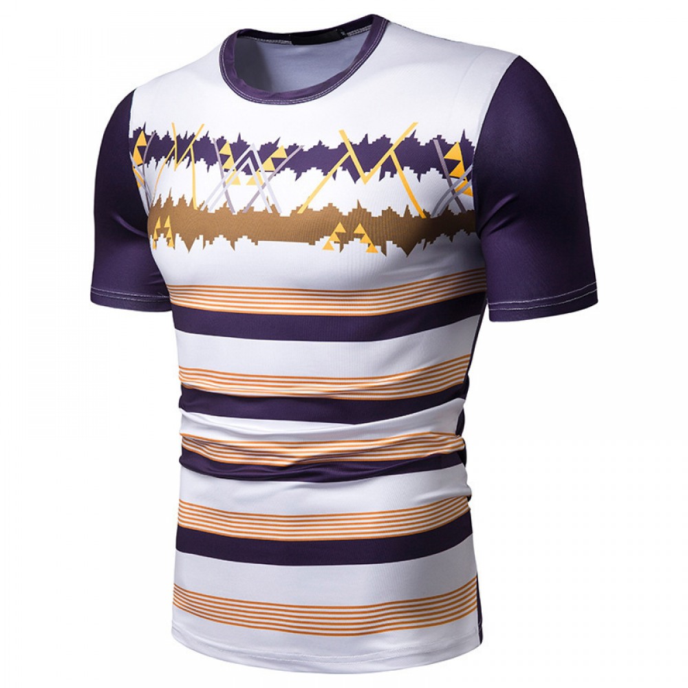 New Summer Men's Short-Sleeved T-Shirt Men's Contrast Striped Slim Casual T-Shirt