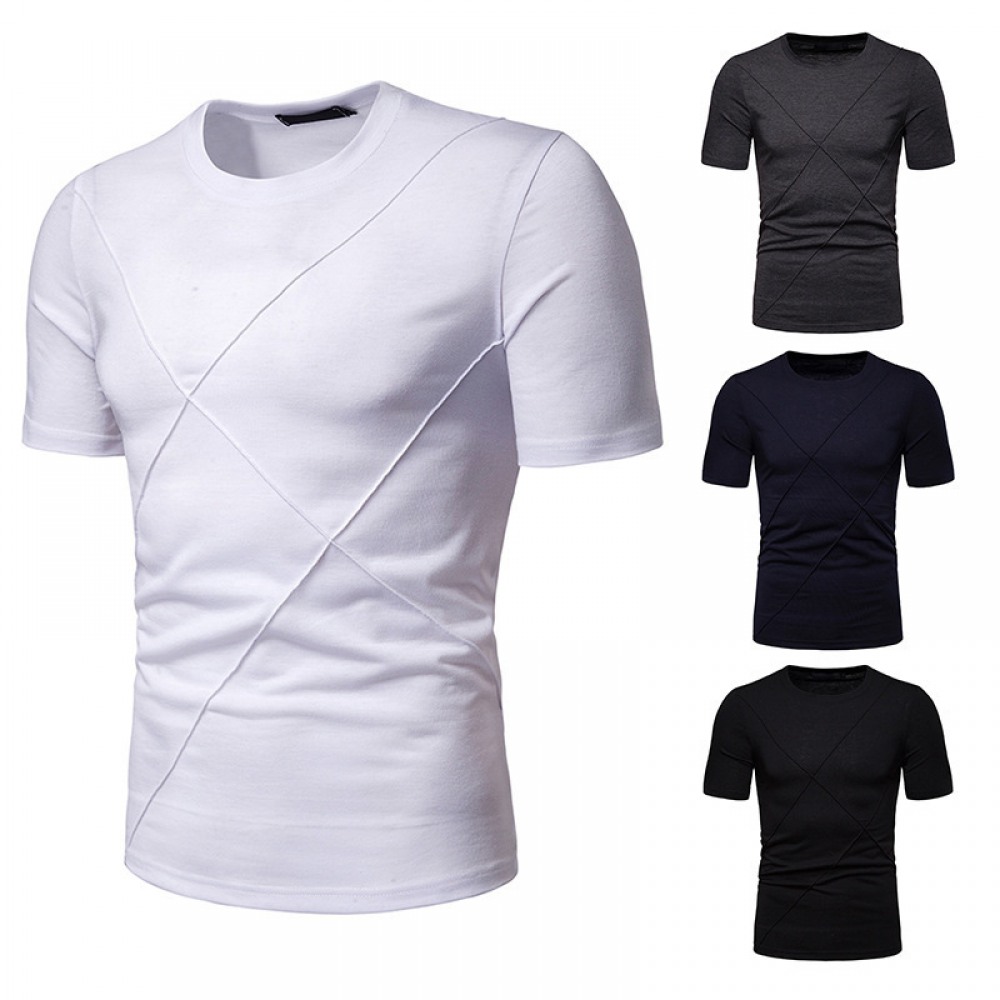 New Summer Men's Short-Sleeved T-Shirt Men's Contrast Striped Slim Casual T-Shirt