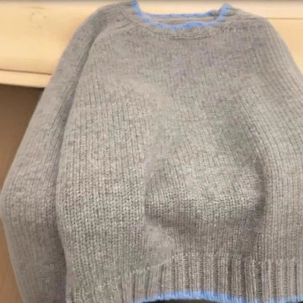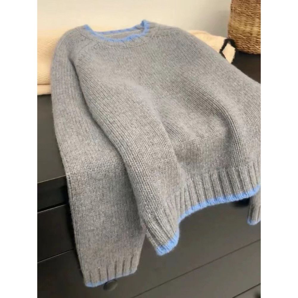 Women's Loose Colorblock Round Neck Short Wool Knitted Sweater
