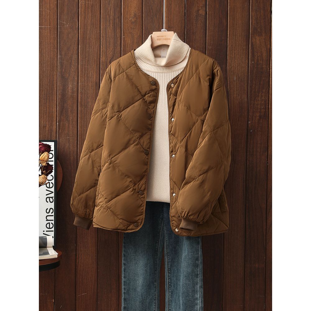 Women's Short Down Jacket Round Neck Loose Casual Coat