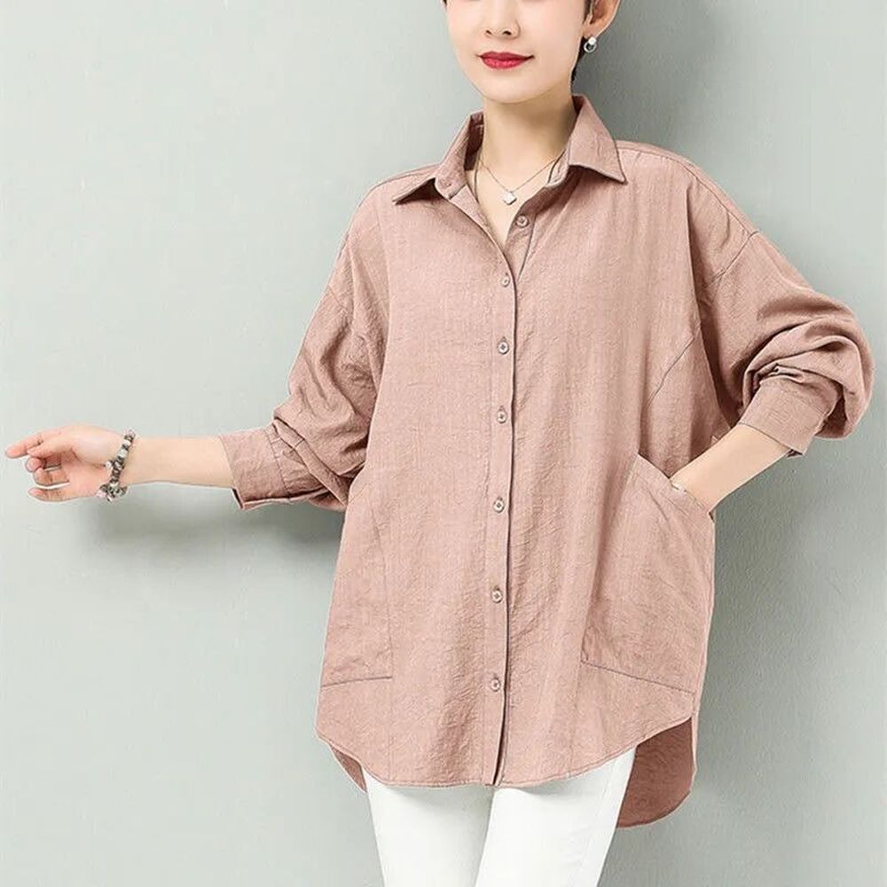 Cotton Long Sleeve Shirt Women's Medium Length Cardigan Thin Coat