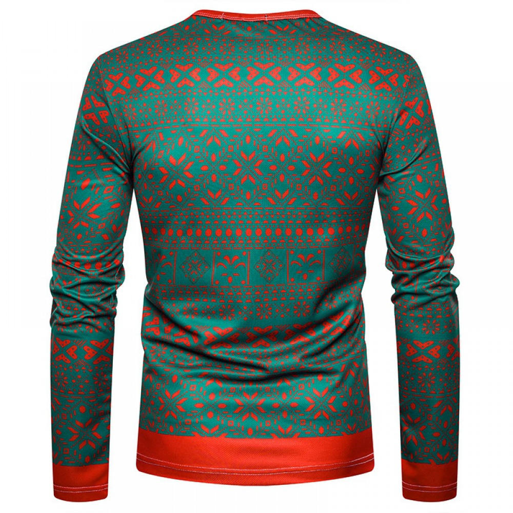New 3D Personality Printing Fashion Men's Christmas Elk Pattern Long-Sleeved T-Shirt