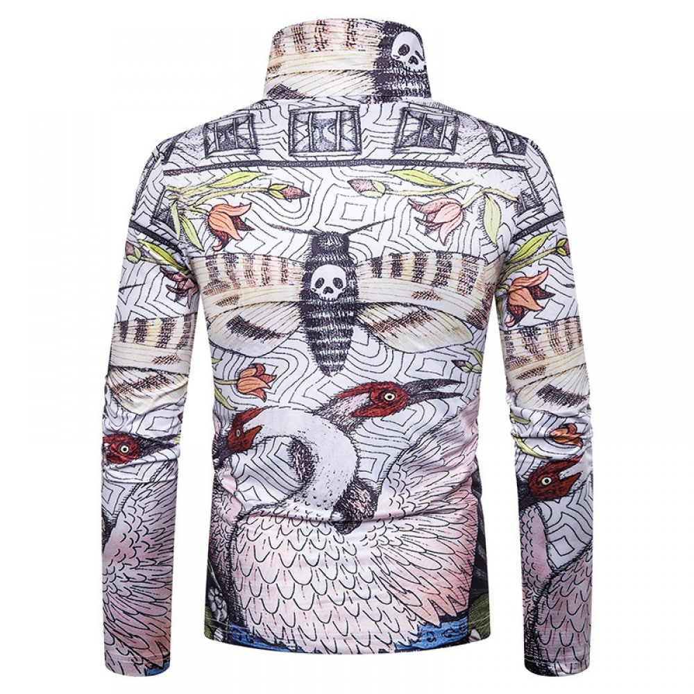 New Men's Large Size 3D Animal Print High Neck Long Sleeve T-Shirt Bottoming Shirt