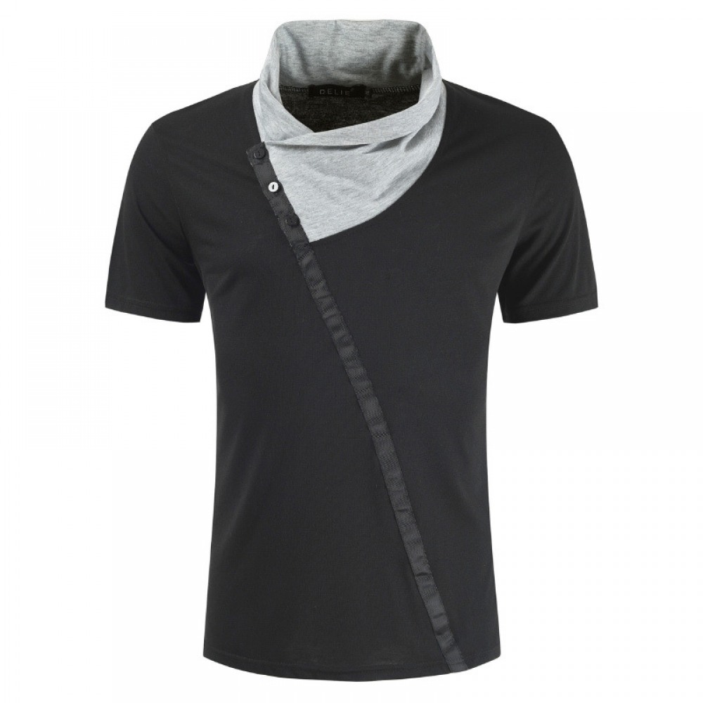 New Style Short-Sleeved Fashion Color Matching Pile Collar Men's Casual Shirt Plus Size Loose Printing Stitching Contrast Color