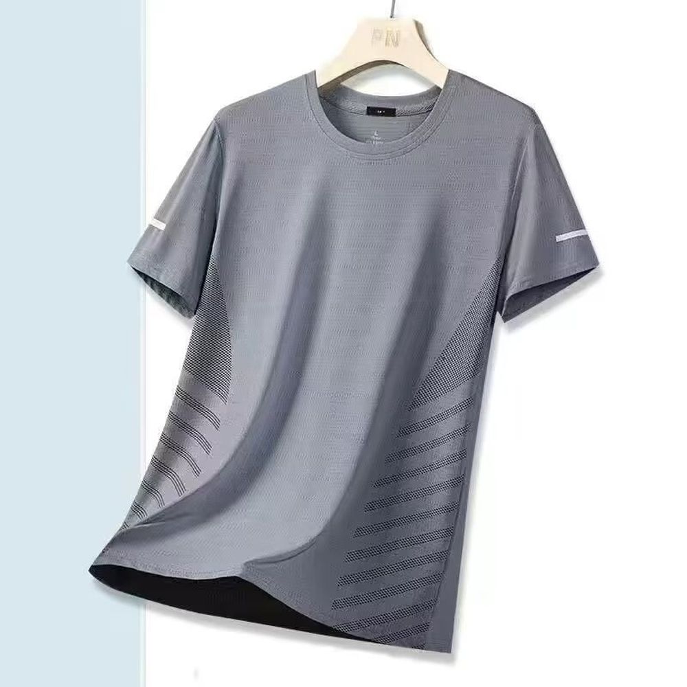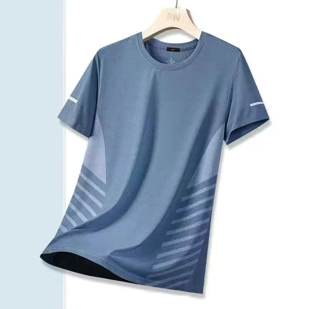 Summer Ice Silk T-Shirt Men's Round Neck Solid Color Quick-Drying Clothes