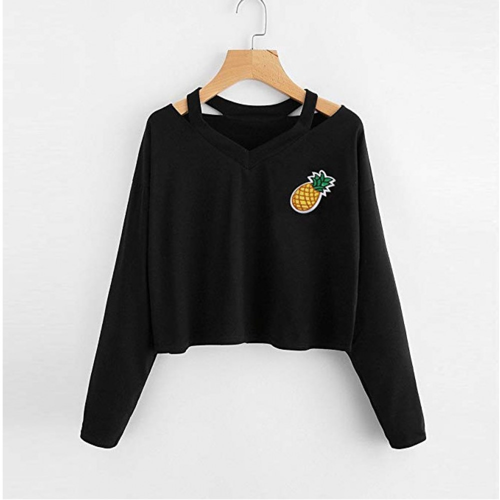 V-Neck Pineapple Embroidery Short Long-Sleeved T-Shirt