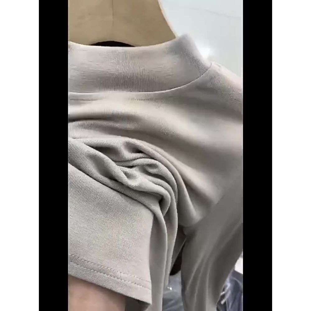 Round Neck Short Sleeve Knitted Sweater Women's Pleated Waist Slim T-Shirt Top